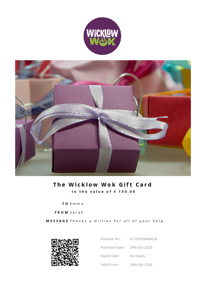 The Wicklow Wok allows you to purchase instantly printable gift vouchers, special offers and tickets using the Voucher Connect platform.